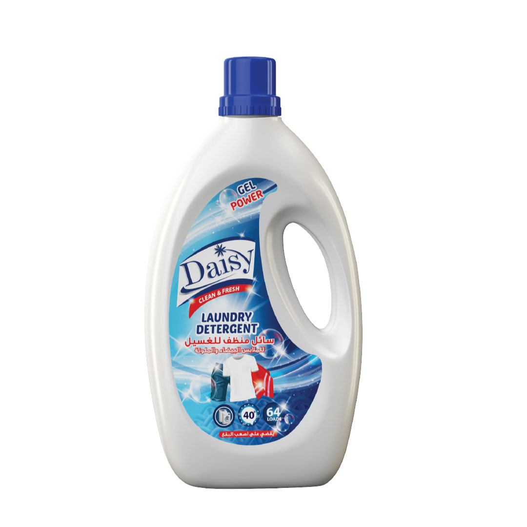Daisy laundry Liquid detergent is a complete alternative to any detergent powder with the latest technology for deep cleaning white and colored clothes. It removes stains easily and gives them super softness. It perfumes clothes with a beautiful fresh scent that lasts a long time on your clothes and keeps them like new. It preserves fabrics for a long time, as liquid detergents do not cause damage to fabrics. Thanks to its liquid form, it will not leave any residue on your clothes or washing machine.